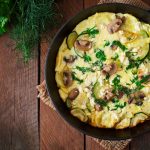 Successivamente, aggiungere il riempimento: un paio di cucchiai di funghi trifolati per ogni sfoglia.