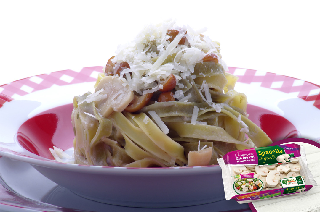 Nel frattempo cuocete la pasta in abbondante acqua salata, assicuratevi di scolarla al dente e aggiungetela ai funghi. Aggiustate di sale e pepe e servite abbondando con scaglie di formaggio.