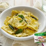 Nel frattempo cuoci le trofie in abbondante acqua salata e, una volta cotta la pasta, scolala e versala direttamente nella padella con il condimento. Aggiungi un po’ di acqua di cottura se dovesse risultare troppo asciutta.