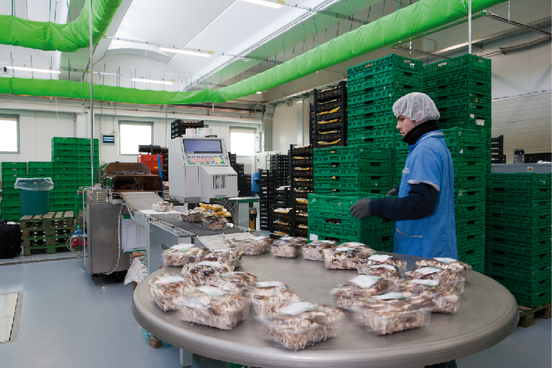 I funghi, una volta raccolti nelle fungaie, vengono selezionati con cura. Una parte di essi viene sistemata direttamente in cassette pronte per essere consegnate ai mercati all’ingrosso. I rimanenti vengono riposti in vaschette o indirizzati alle linee di lavorazione e immediatamente affettati e confezionati per la grande distribuzione. Il personale che seleziona e manipola il prodotto ha cura di mantenerne anche l’integrità.