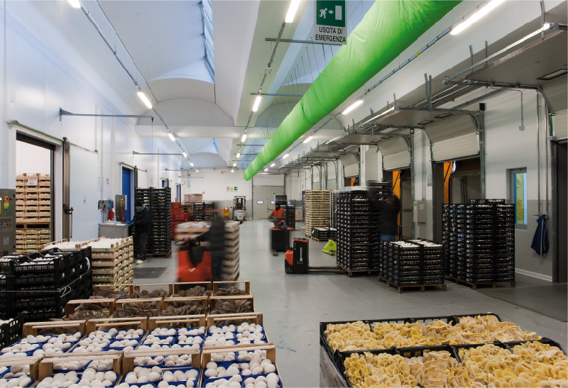 Grazie ai suoi oltre 1.800 m2 di celle refrigerate di stoccaggio, ai 4.700 m2 di logistica e trasformazione e ad una propria flotta di automezzi viene garantito il mantenimento della catena del freddo per consentire ai funghi di giungere sui mercati ortofrutticoli o alla grande distribuzione in modo rapido, in ogni parte d’Italia.
